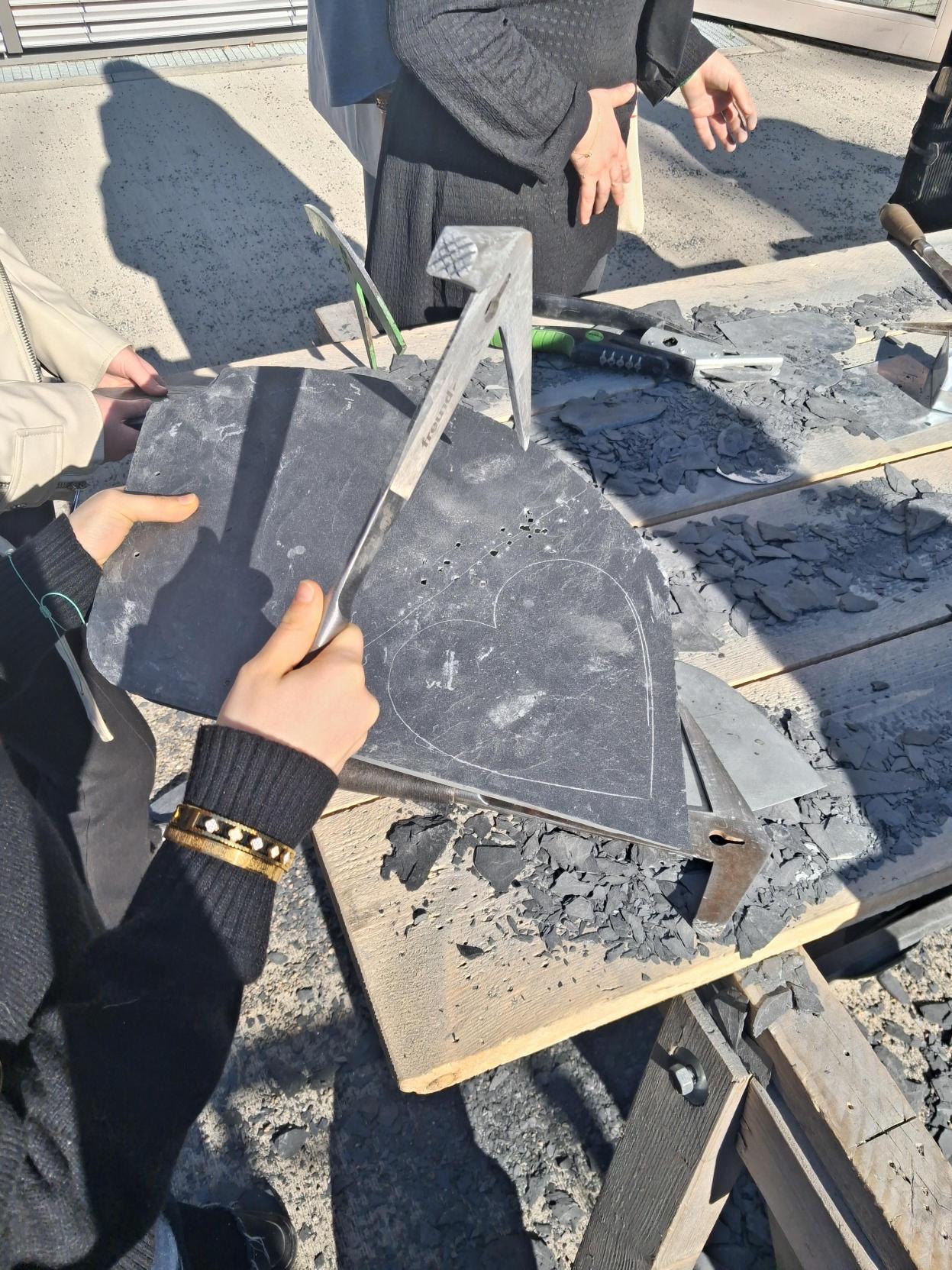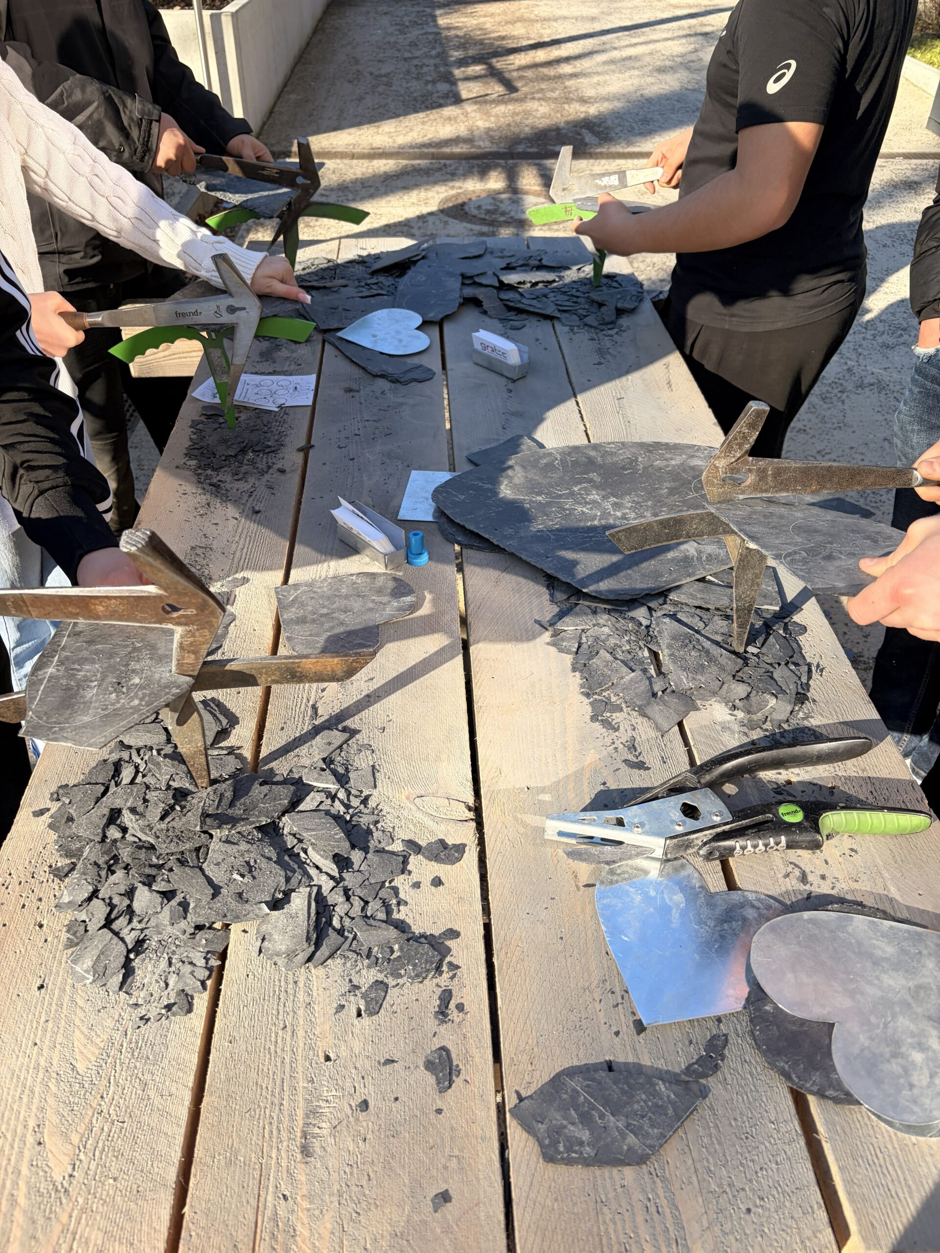 Unsere Schüler*innen kamen mit den Arbeitgebern über Ausbildungs- und Studienmöglichkeiten ins Gespräch und die Schüler*innen konnten aus erster Hand erfahren, worauf die Personaler bei der Suche nach neuen Auszubildenden besonderen Wert legen. Auch praktisch durften sich die Schüler*innen ausprobieren, sei es beim Fieber messen bei Vivantes oder dabei, mit einem Hammer ein Herz aus Schiefer bei Gratec Dachbau auszuschlagen.