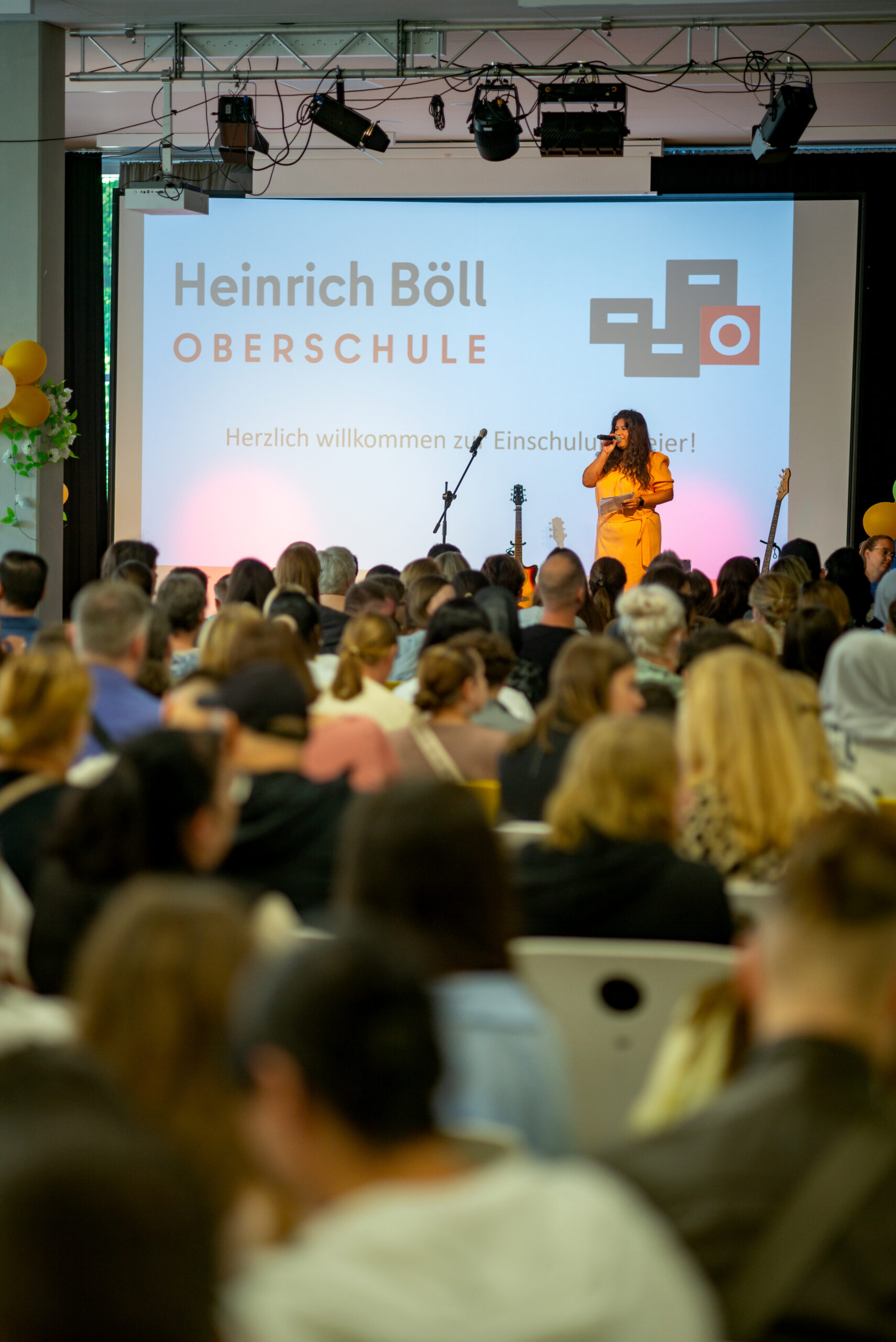 Am 08. September wurden 182 neue Schülerinnen und Schüler der Mittelstufe in unserer Aula begrüßt. Unsere Mittelstufenleitung Frau Schulterobben hieß Kinder und Eltern an der HBO willkommen. Auch unsere Schulleiterin Frau Faak hatte hilfreiche Tipps für Schülerinnen und Schüler und auch die Eltern vorbereitet. Begleitet wurde die Veranstaltung durch den Auftritt der Lehrerband, einen Beitrag der Schülerinnen und Schüler des Musikprofils und den Auftritt der Schülerinnen aus dem Tanzprofil.