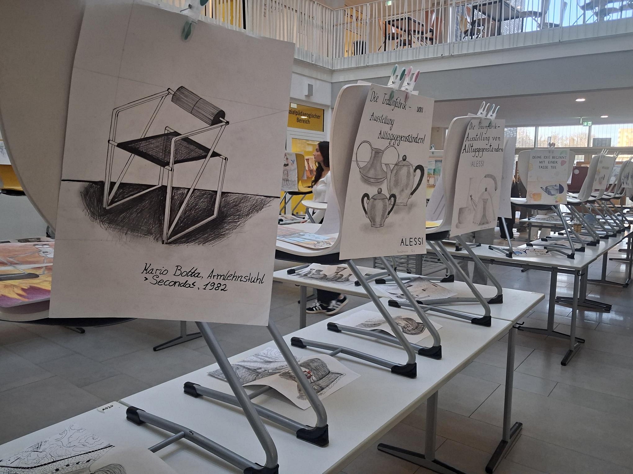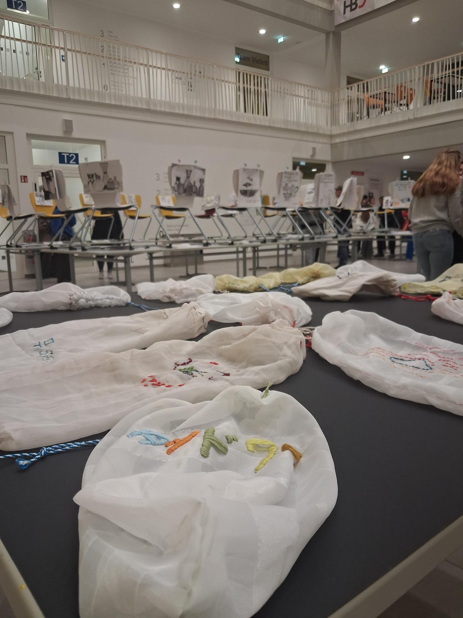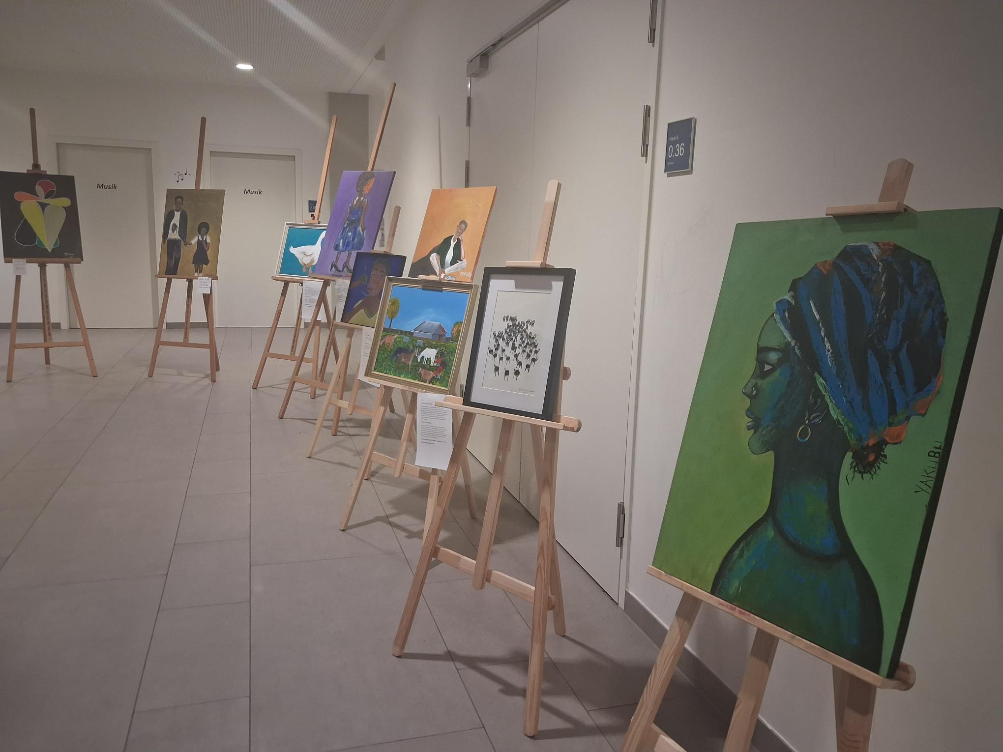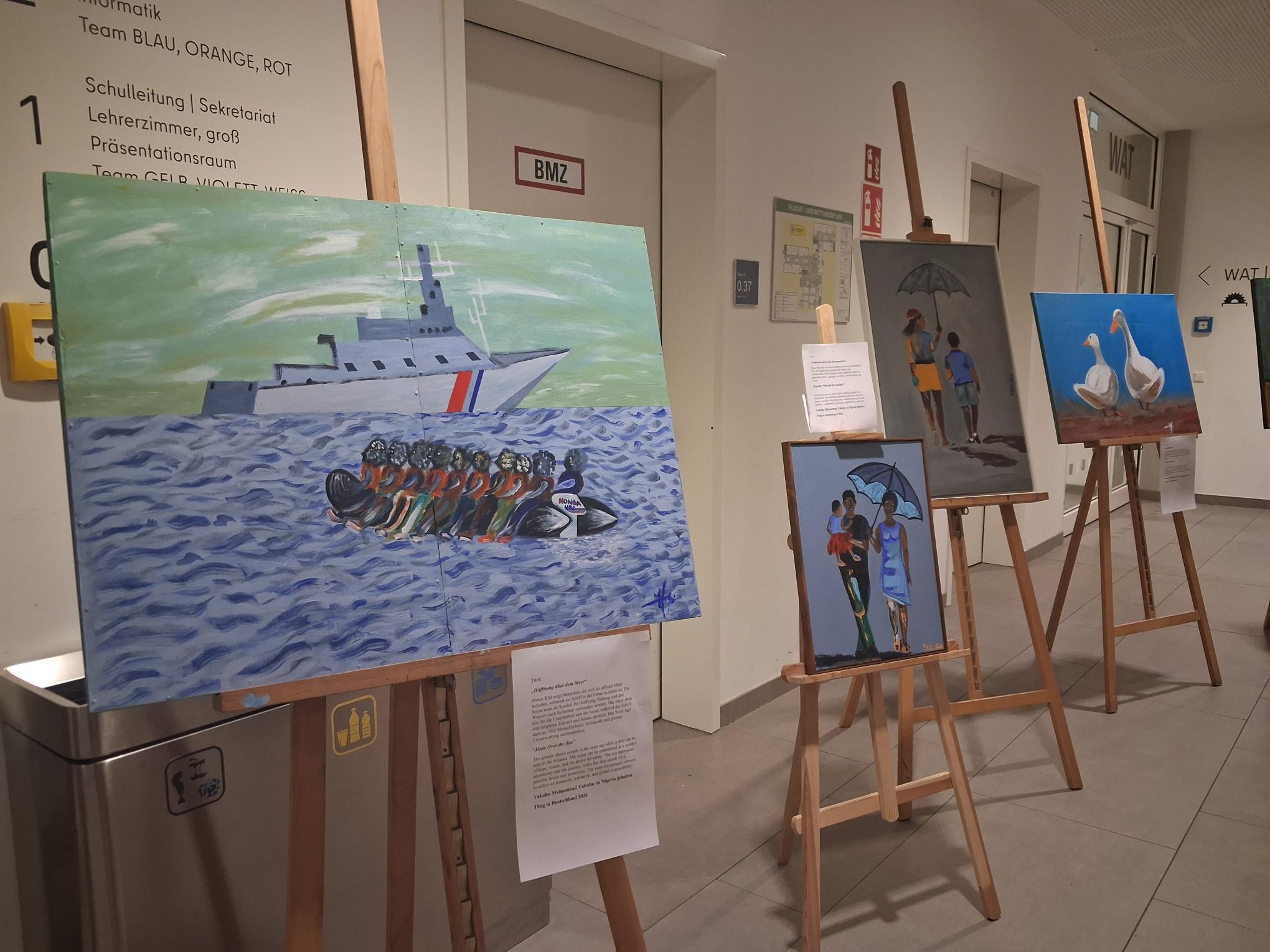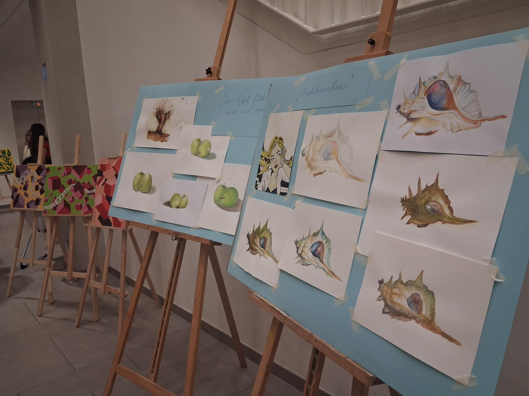Bestaunen konnte man auch die künstlerischen Arbeiten der Kunstkurse im Foyer. Dort war eine Ausstellung aufgebaut worden, bei der sich die Gäste einen Eindruck von den vielseitigen Talenten der HBO-Kunstschaffenden machen konnten.