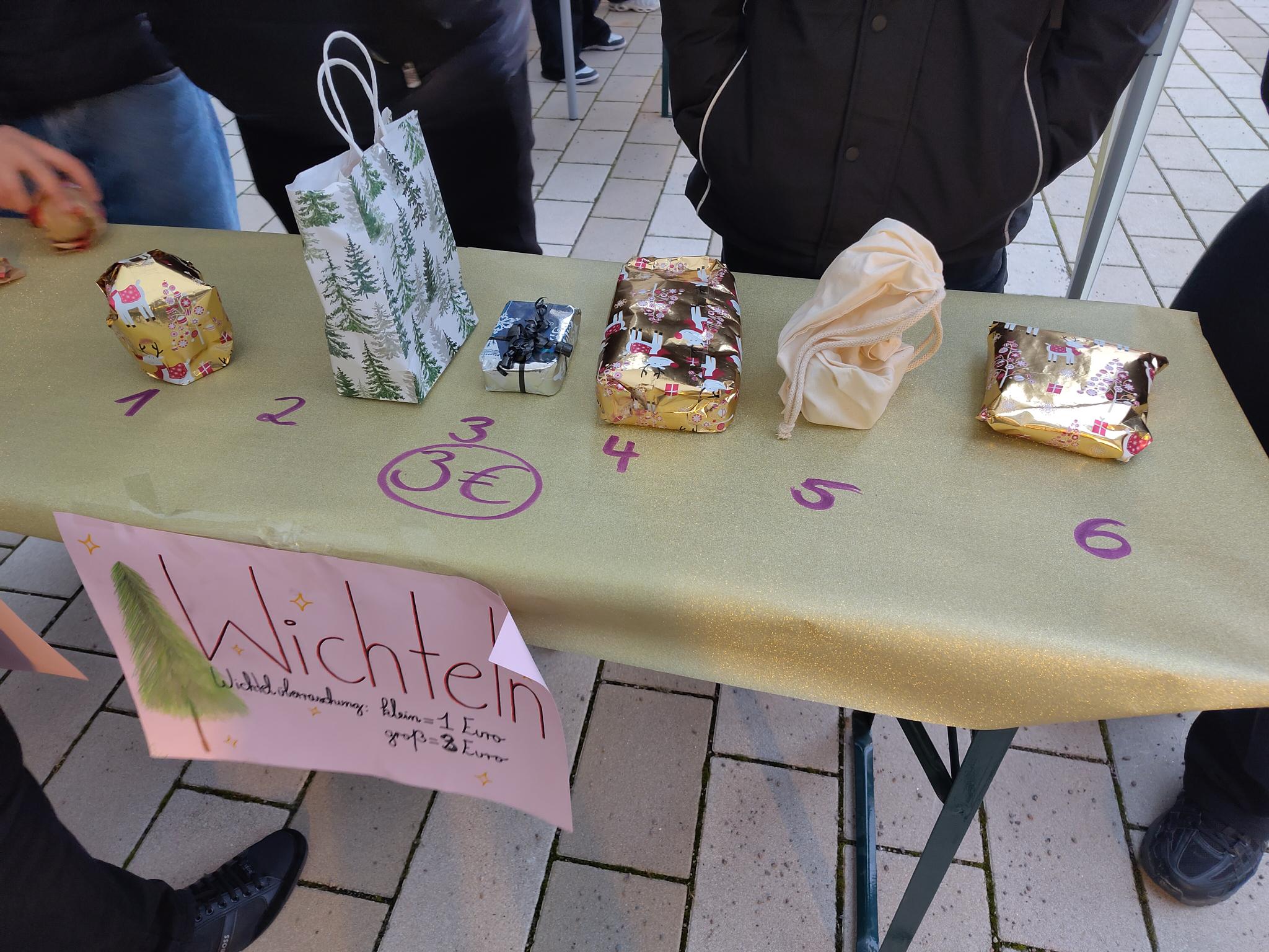 Bei winterlichen Temperaturen fand am 4.12. unser diesjähriger Weihnachtsbasar statt. Beim Anpreisen von Basteleien, kleinen Geschenken oder selbst eingekochten Quitten entdeckten so manche Schüler*innen ihr Verkaufstalent.