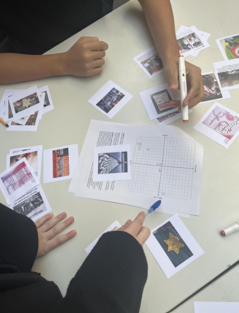 The groups had to arrange the images in a graph with the criteria normie, red-pilled, violence and humour. Whenever we didn’t know how to properly sort the pictures, we could use a poster which explained most of them. At the end, the groups picked one or two photos and explained their meaning and spot in the graph to the class.